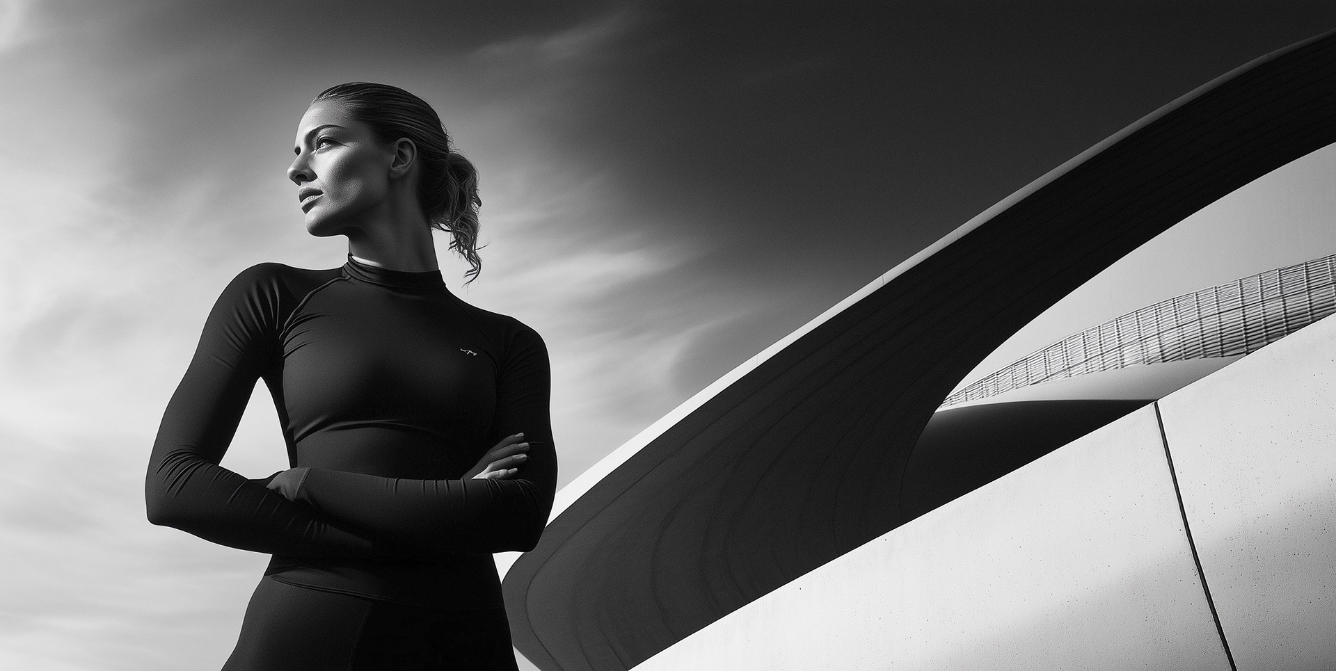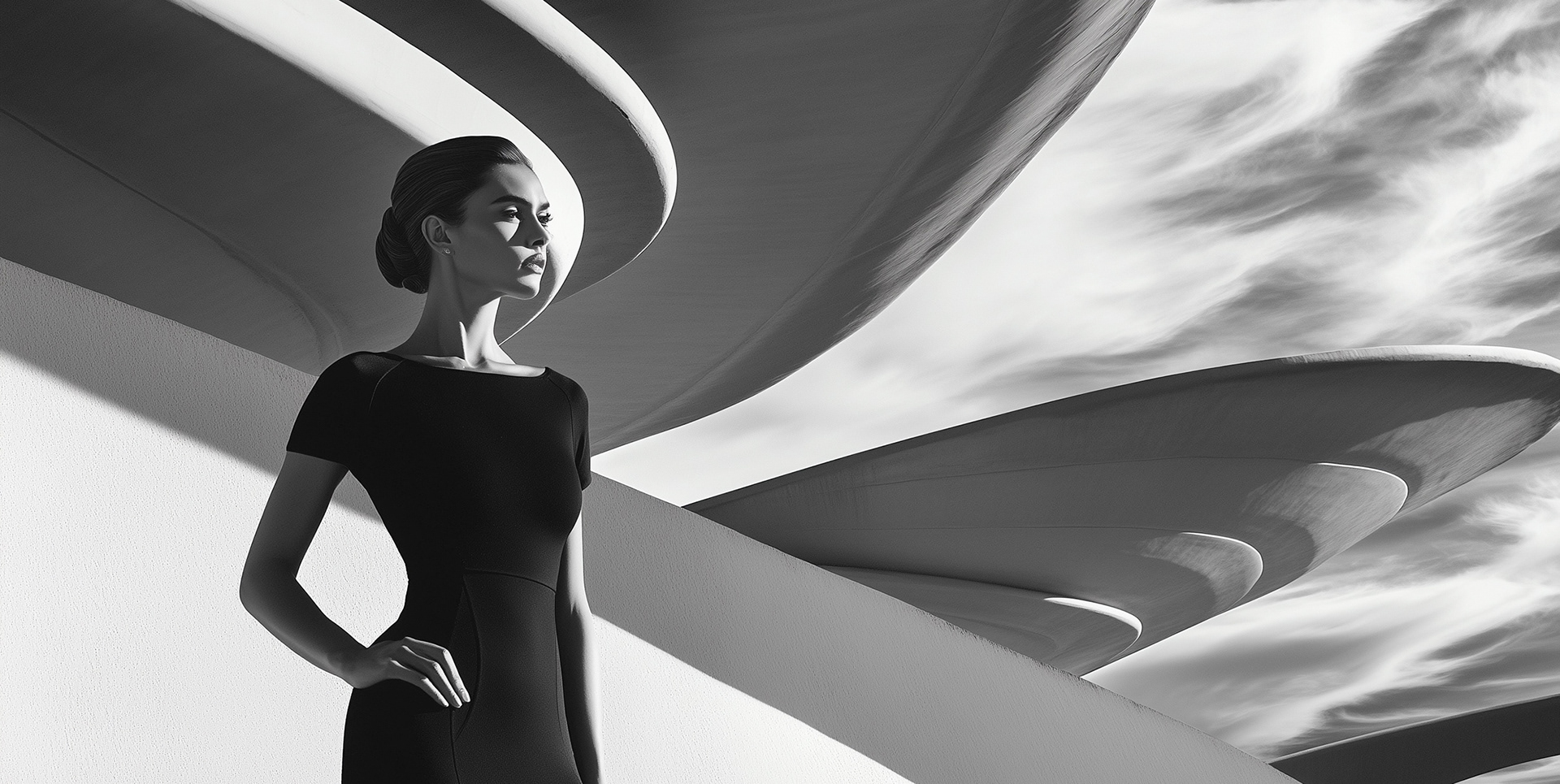 ARCHITECTURE (04/25) Architecture always had a profound fascination and influence on me. Here a striking series of high-contrast visuals blending contemporary architecture with stylized human form. Each image captures a bold interplay of light, structure, and silhouette—where sculptural buildings become backdrops for timeless fashion and poise. Inspired by Bauhaus, Brutalism, and Futurism, this collection evokes sophistication, strength, and quiet drama.